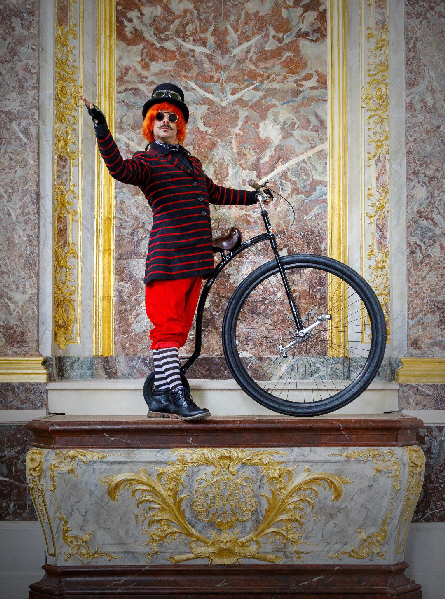 Voyageur dans l'espace et le temps, il déambule sur son vélo "Grand-Bi", en "Triporteur", ou encore pérché en haut de son monocycle "Giraffe".